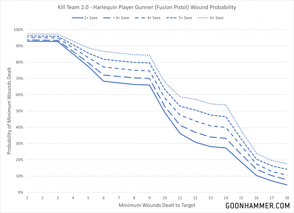 While Harlequin Gunners aren't a standard troop unit, I thought it would be interested to look at the output of a specialized model killer like the fusion pistol. The fusion pistol is devastating thanks to the combination of