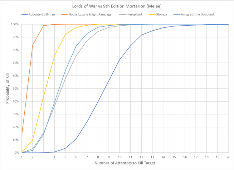 In general the trends follow what we've seen with the other units, requiring multiple turns to have a decent chance of killing Mortarion thanks to all of the overlapping bonuses. Over a year ago we explored the insanity that was a