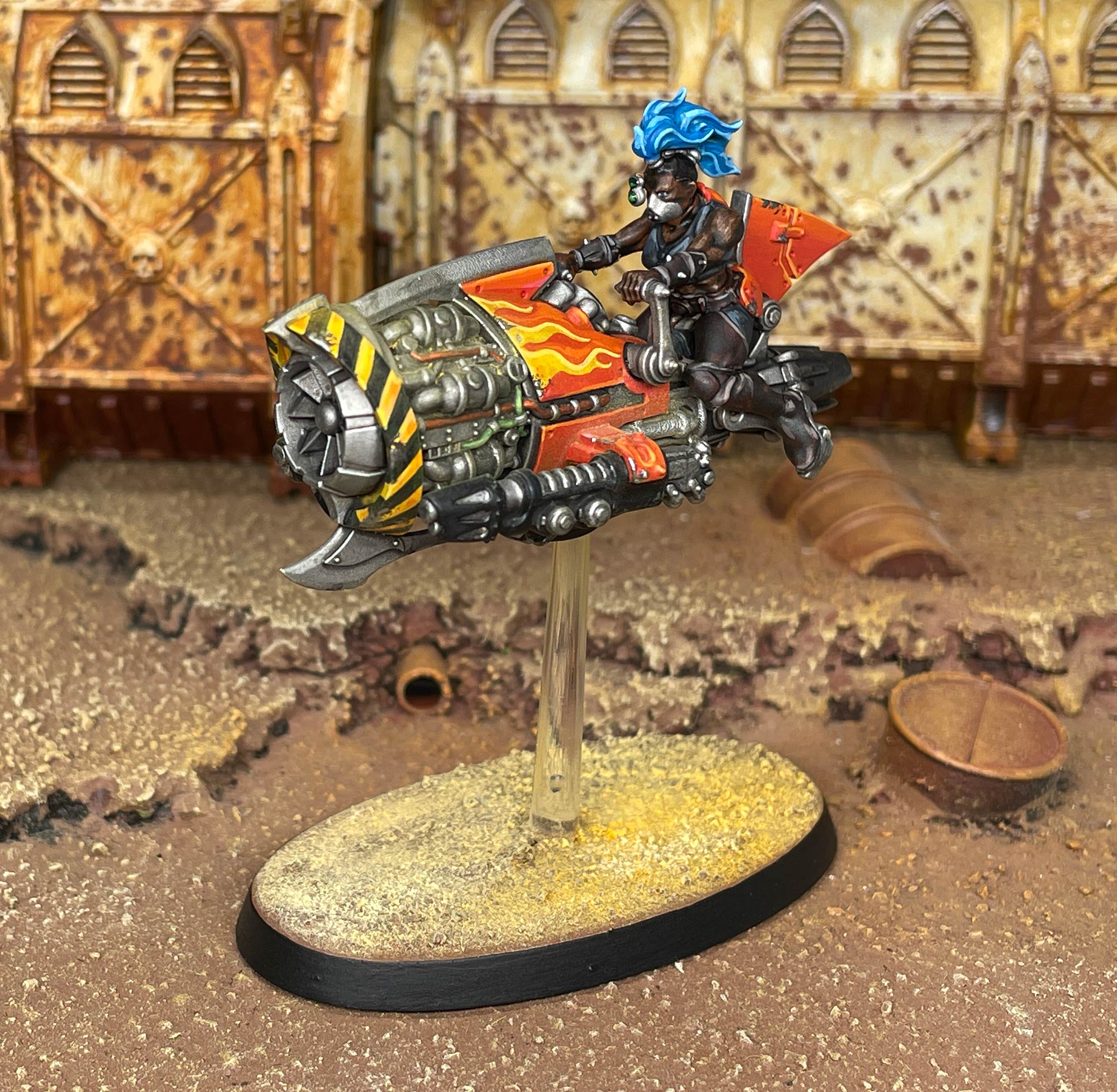 When the Book of the Outlands dropped it added a new piece of equipment for Wasteland gangs called the Waster's Dirtbike. For 50 credits the model gained the Mounted condition and increased their Movement characteristic to 8". This is essential for any models that want to participate in a Rolling Roads scenario, as anything slower will get left off the board (or be forced to ride on a vehicle). Where things get fun is that the rules also include a bit that, with your Arbitrator's permission, you can add an Upgrade or two. Antigrav generators? Go for it. Extra Armour? Maybe your Arbitrator will be down for boosting your model's Toughness characteristic. Gas Promethium Engine that spits out flame and causes any model within 1" to suffer a S3 hit with AP -1 and Blaze? Now you're talking!