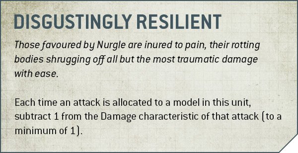 One of the most iconic aspects of the Death Guard is their resiliency, their ability to withstand unimaginable amounts of firepower and stagger inexorably forward. Since at least 5th Edition,