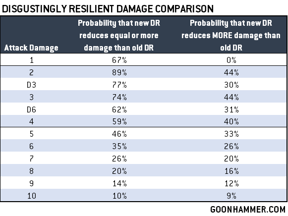 Disgustingly Resilient is either equal to or better (middle column), or absolutely better (right column) than the old version. To do this requires looking at the