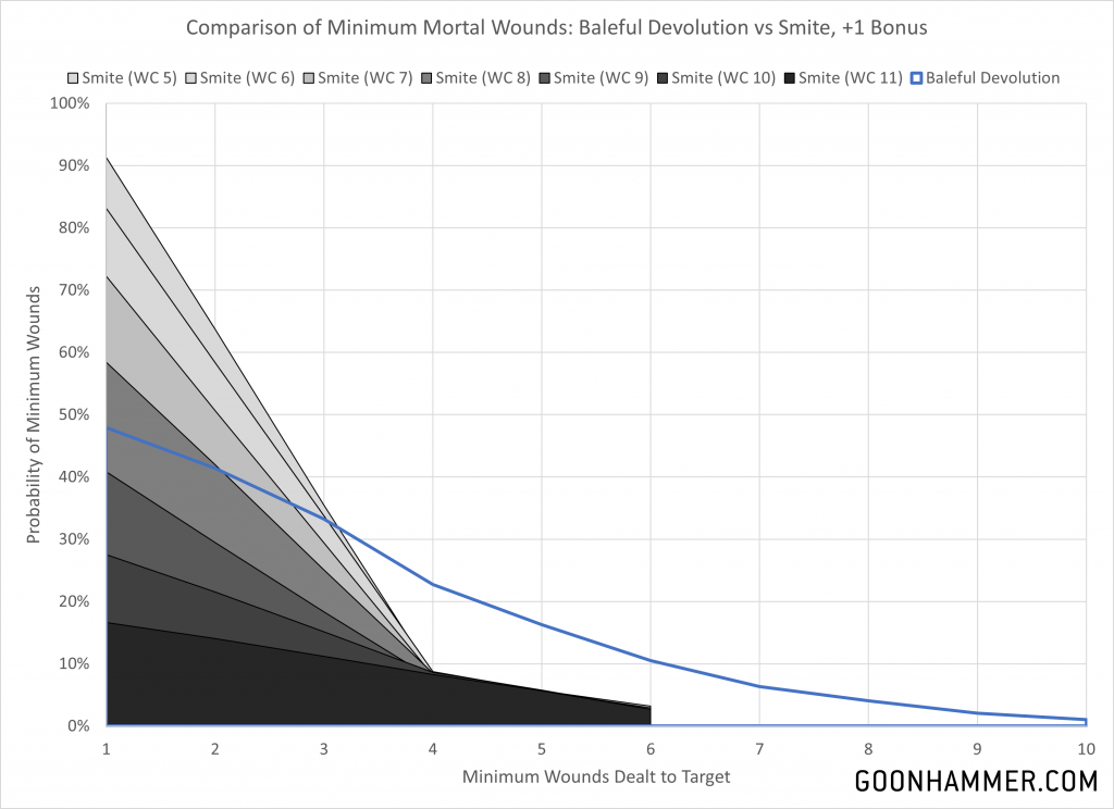 Doombolt (WC 6) is a perfect example. Previously this spell was WC 9 and dealt 1d3 mortal wounds. Now it's WC 6 and inflicts a flat 3 mortal wounds; much easier and more reliable.