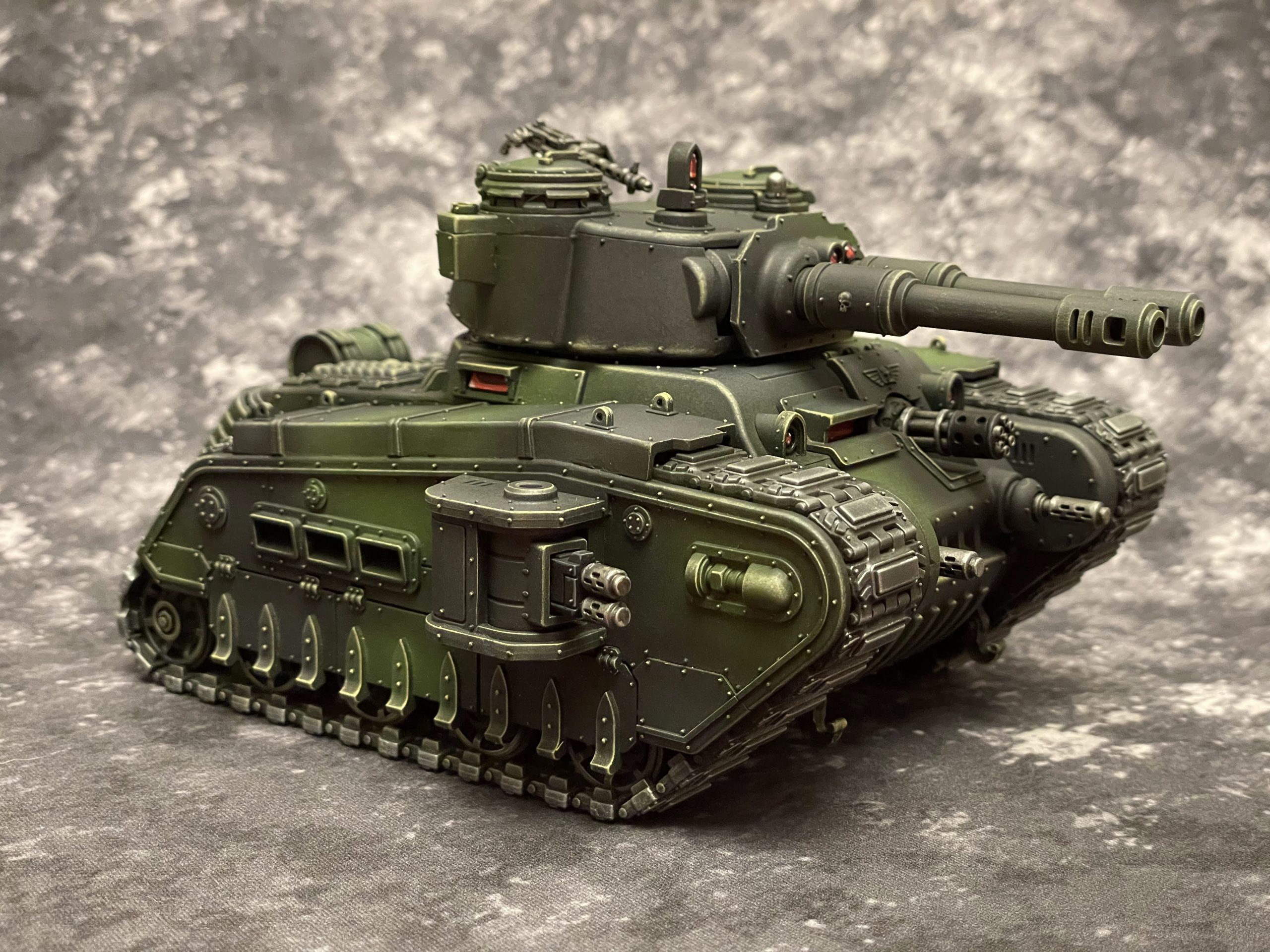 - The battle cannon can be replaced with a oppressor cannon which fires D6+3 S12, AP -2, D3 shots with [BLAST]. It also comes with a co-axial autocannon with 2 shots at S9, AP -1, D3, and a BS of 3+.