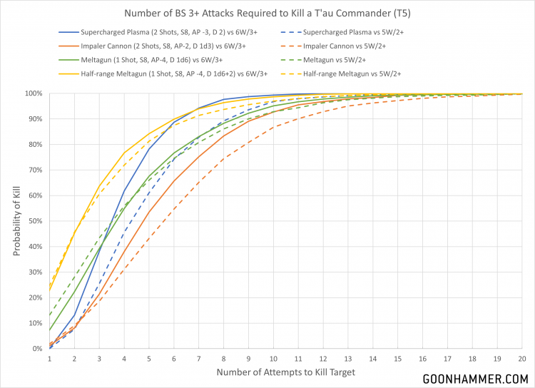 This week's Hammer of Math will cover several reader submitted questions submitted via our request form. Specifically we'll look at the difference between T'au Commander options, when (if ever) it's worth firing both barrels of combi-weapons, and which of the big nasty threats from Dark Angels and Death Guard is harder to kill.