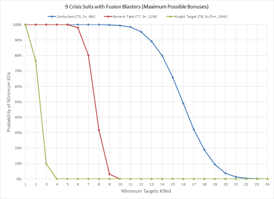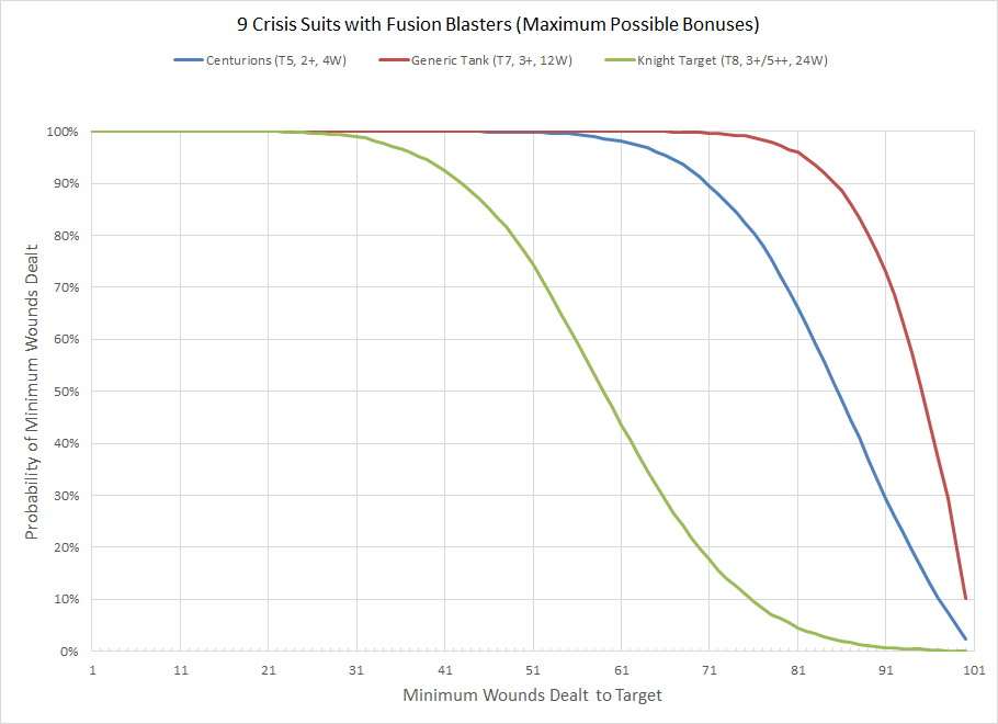 I hadn't considered the possibility that this squad has a 77% chance of earning its points back against a Knight opponent, but play your cards right and apparently it does. Of course "play your cards right" means "somehow get a unit of Crisis Suits within nine inches of two Knights" which is a nice way of saying "