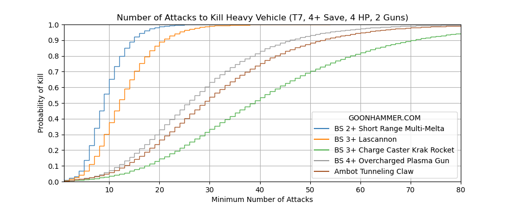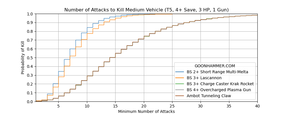 We have crossed from absurd straight into abject stupidity. The multi-melta is the premiere anti-tank weapon, intended for the destruction of hardened bunkers and the most dangerous of threats the Imperium faces. So great is the threat posed by melta weaponry that the most valuable of vehicles are protected by armor explicitly designed to counter them. Yet somehow in Necromunda a multi-melta can shoot at a glorified cargo truck 20 times and still fail to wreck it.