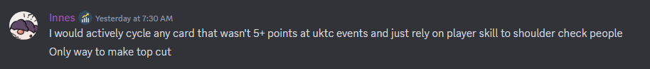 Innes and Nassim, who are both regulars at UKTC events also talked about playing in those events, which strongly incentivized playing to max your score in order to make the top cut.