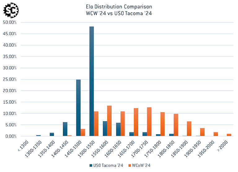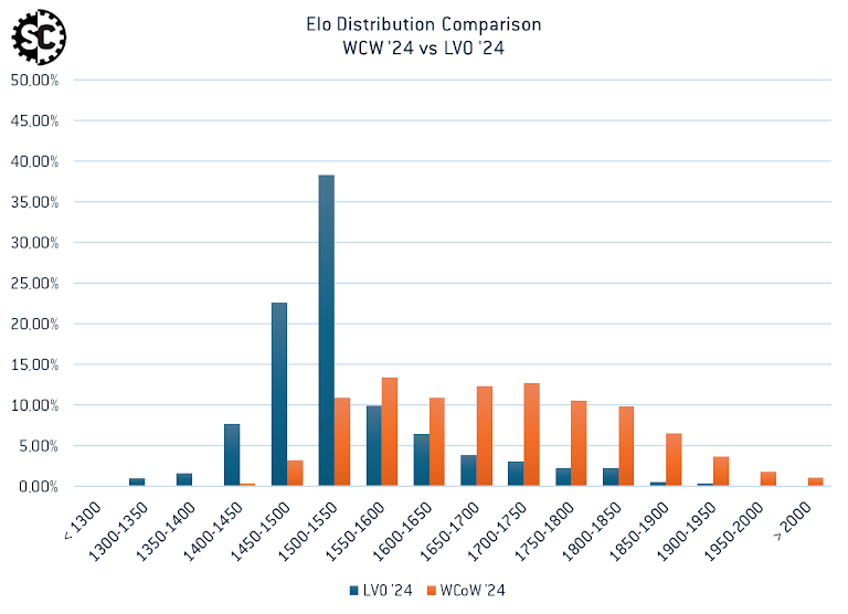 This relationship can be seen more clearly by comparing the Elo distributions for WCoW ‘24, LGT ‘24, LVO ‘24, and USO Tacoma ‘24.