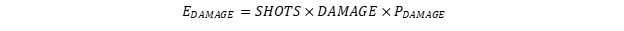 There are two additional rolls that need to be considered; the shots roll (the number of shots an attack performs) and the damage roll. Although these events are independent in the sense that their probability is not connected to any other events, they heavily determine the outcome of the attack by determining the quantity of wounds dealt. For the sake of clarity I’ve called these events driving rolls while the other rolls that only influence probability are gatekeeping rolls. Driving rolls determine the quantity of the attack, gatekeeping rolls determine how successful the attack is. Together this gives you the final estimate for damage: