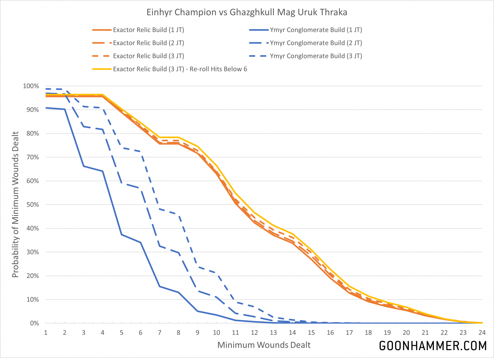 - The damage output of the Einhyr Champion with the Exactor Relic and Warrior Lord is downright terrifying, given that Ghaz is saving on a 4+ and will still die 40% of the time. If you have the room in your army it's definitely worth considering adding that unit.