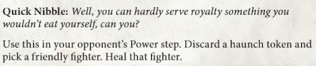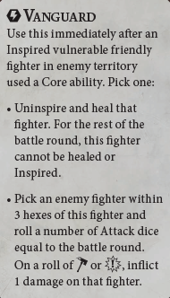 Prideful Duellist from Pillage & Plunder is another ploy that can heal one of your fighters, but only after they make an attack in enemy territory. Fortunately, it doesn't have to be successful so as long as you can get a fighter into position, you can reliably heal with this.