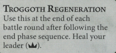 Mollog's Mob does a good impression of the Gifted Vitality upgrade mentioned earlier. It's quite handy because Mollog is absolutely going to take damage in 99% of games and he has a high enough health pool to probably survive to at least one end phase for this to take effect. The troggoth already takes quite a bit of effort to bring down, and by combining the warscroll's regeneration along with any of the other healing effects mentioned above can make it even more punishing for Mollog's opponents.