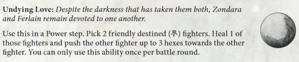 Zondara's Gravebreakers have their recently changed Undying Love which is another combination heal ability. This time it's a massive three hex push along with a heal, but you're restricted to using it with the happy couple of Zondara and Ferlain. The February 2026 update changed it to be usable once per round instead of once per game, so (in theory) you can get three heals off per game now. In practice, one of the lovers is probably going to die by round three but it's still quite powerful and I've been less tempted to sit on it waiting for the "perfect moment" with this change.
