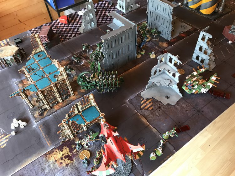 TR: 5 Dire Avengers (40), Exarch (0), 5 Avenger Shuriken catapults (15), Exarch Additional Avenger Shuriken Catapult (3), Exarch Power Bladestorm [3PL] [58pts]