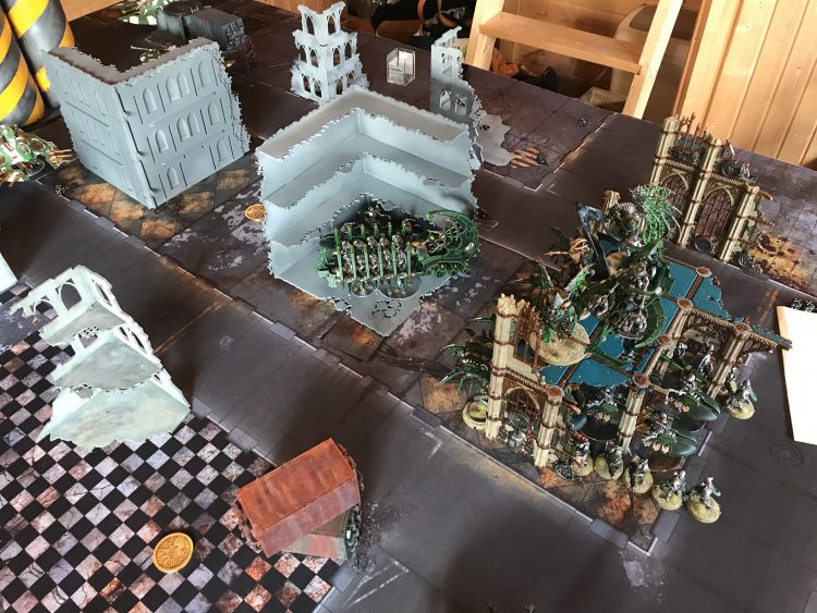 TR: 5 Kabalite Warriors (30), Sybarite (0), Shredder (8), 4 Splinter Rifles (0) [2PL] [38pts]
