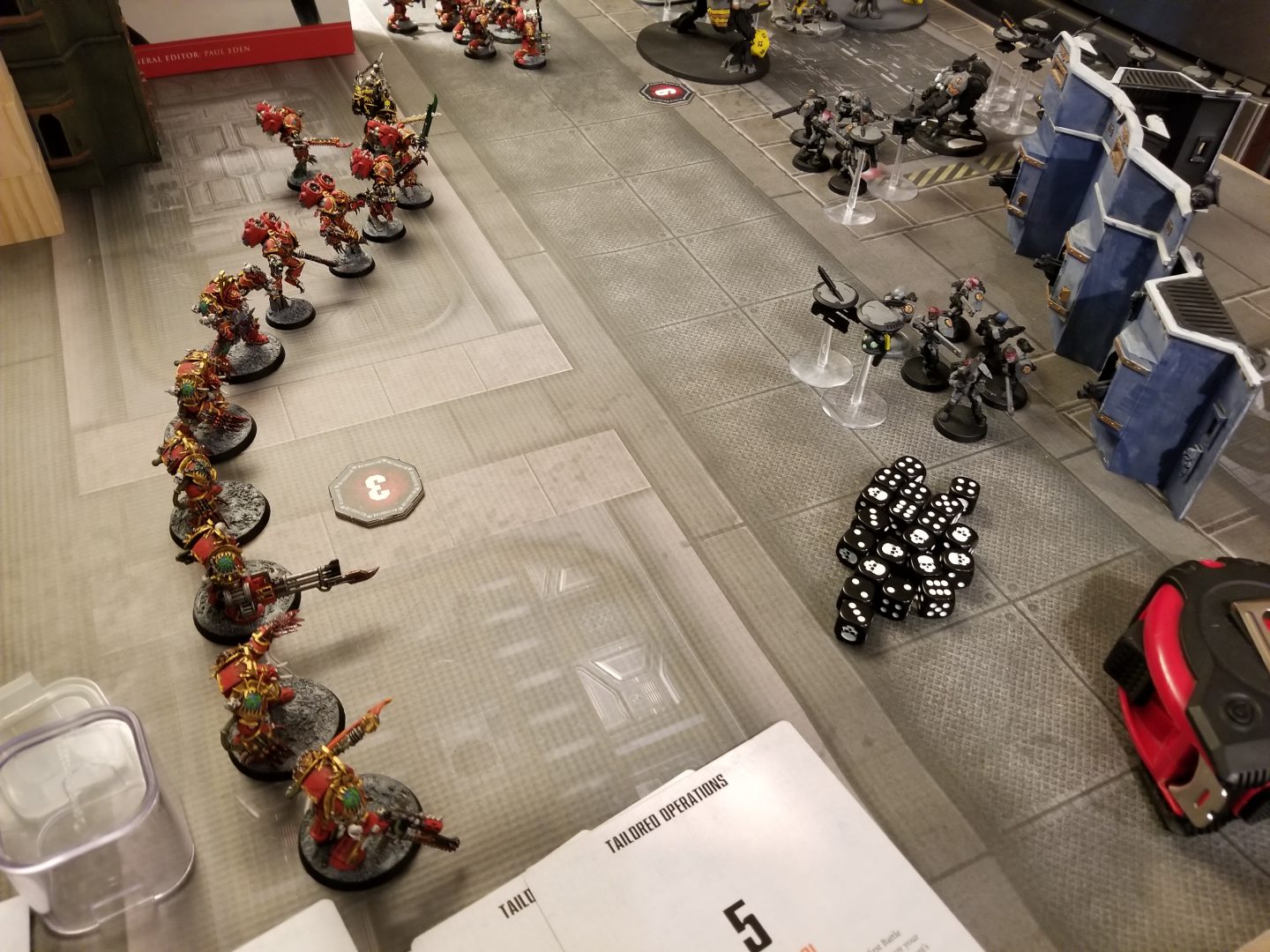 check out our guide to the format here. Deployment on this one was Dawn of War, and we had 6 objectives placed around the table: