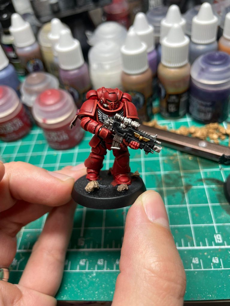 We’re going to go over two different bases here, to show off a few different basing styles. The first will be the Blood Angels Intercessor I painted in the traditional painting article in this series. The second will be a Chaos Space Marine Chaos Lord.