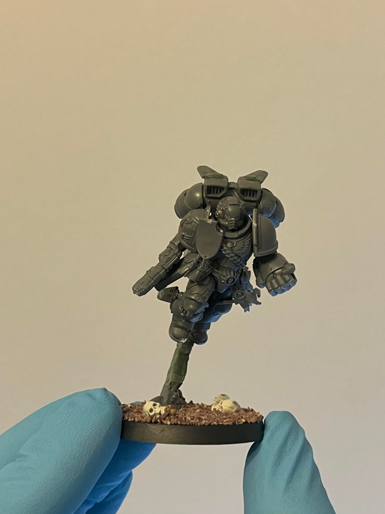 Lets look at this Space Marine Captain with Jump Pack project I’ve got in progress that’s been sitting here on my hobby desk. I’m painting it as a gift for my friend Andrew, Hero of Team Imperium, whose Blood Angels are in need of some reinforcement after a bloody conflict during the Goonhammer Open Narrative.