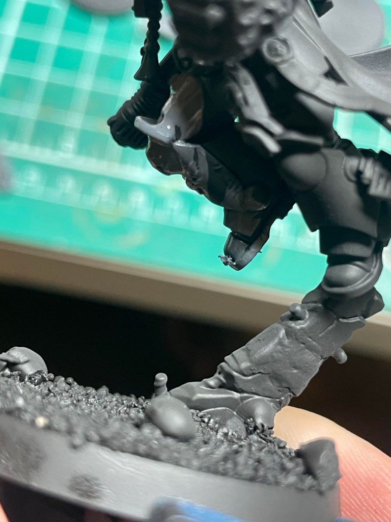 In a fit of rage, I’ve broken the all important hero rock that this model is leaping off from. Again, I totally did not do this on purpose for this tutorial. It was the rage, I swear.