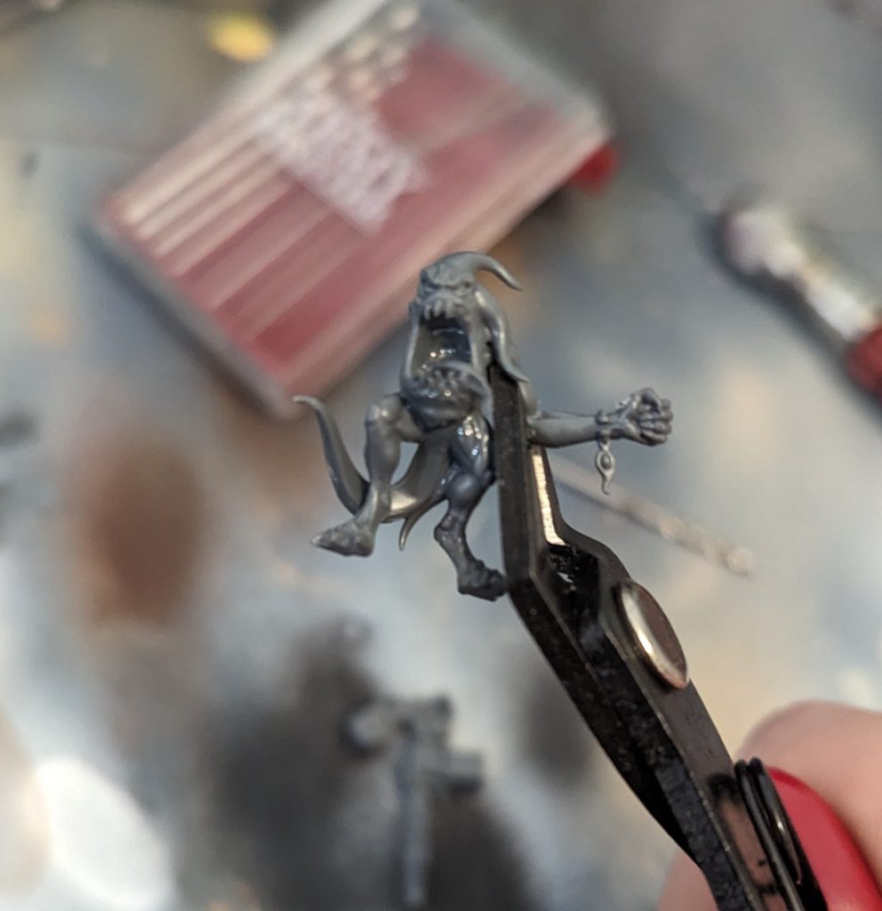 So we have our concept, but now what? Well the daemons under Vashtorr’s command have generally signed a contract to gain more power in exchange for having to provide souls for the soul forge. With that in mind I decided to take the base Blue Horror kit and add some bionics to it.