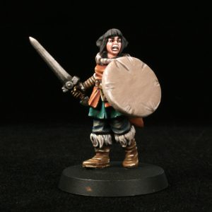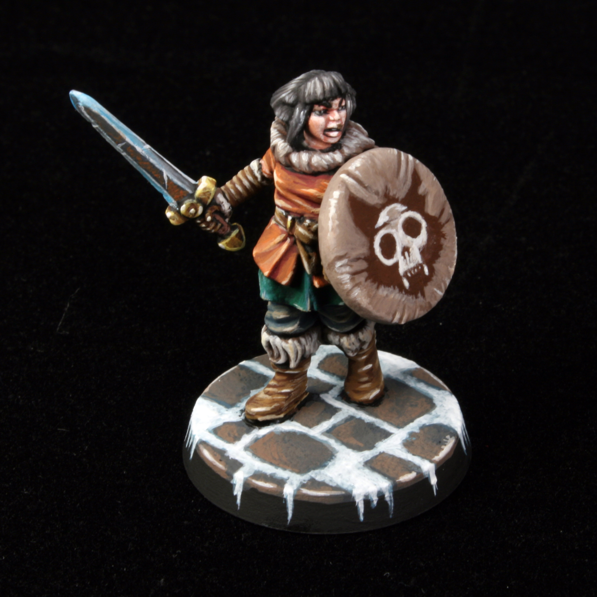 I finish up the sword with some silver and a dark wash. This miniature is tabletop ready, but we'll return to it later after we learn some more about layering to give it some more personality.