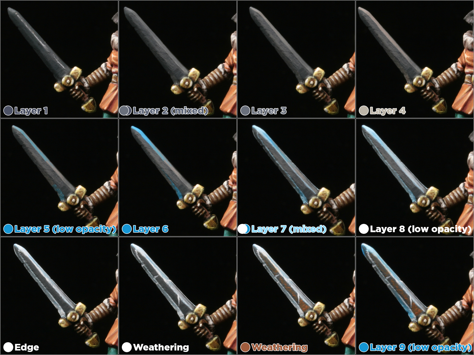 Let's level up our barbarian with all our new layering tools. We'll use color mixing, spacing and reduced opacity to keep the number of needed paint bottles down and give the sword a reflective sheen.