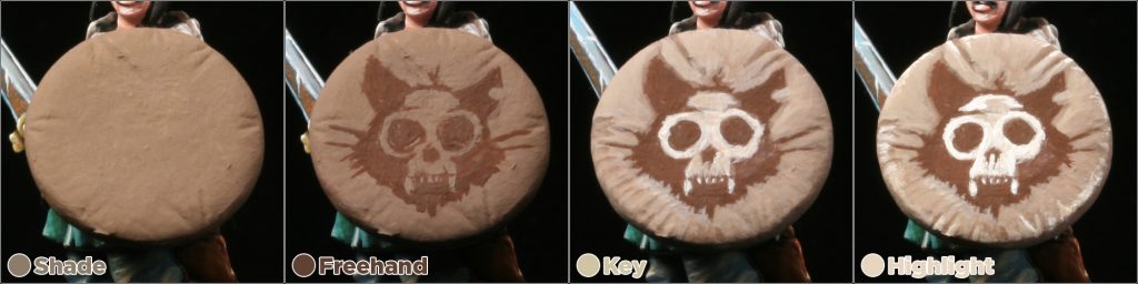 We'll do the shield similarly, but with different colors and pushing highlights to the middle of the shield instead of against the side. This will give the shield a brassy look.