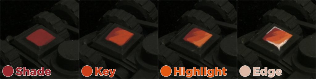 Note how small the highlight is compared to the key. If you put down too much highlight, you will brighten the mini too much.