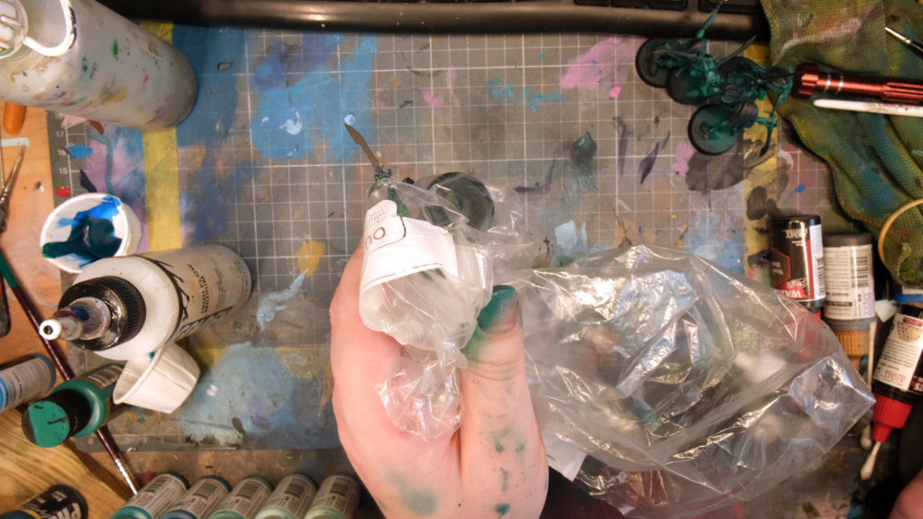 Almost like a raincoat for your model, you can use a plastic bag as a mask if you're painting things that poke out away from the model itself. I use this one particularly for power swords.