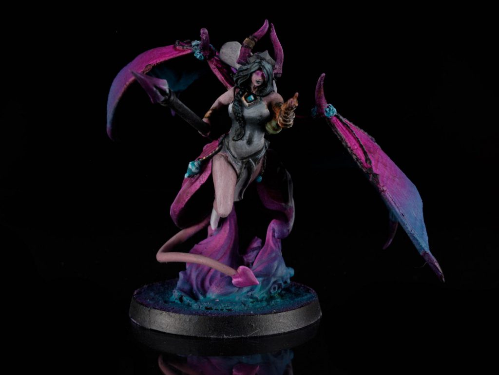 Learning to produce these different colours by mixing from only four paints is a great way to expand your ability and confidence with colour mixing. Give it a try! All you need is a wet palette and those four paints. Setting arbitrary limits and restraints upon yourself gives you an opportunity to experiment and grow as an artist. It doesn't even have to be the four colours Zorn came up with, find a colour scheme you like and challenge yourself to paint a whole model using only a small handful of paints, for example: I painted this succubus lady from Eldfall Chronicles using only magenta, turquoise, orange, black, and white.
