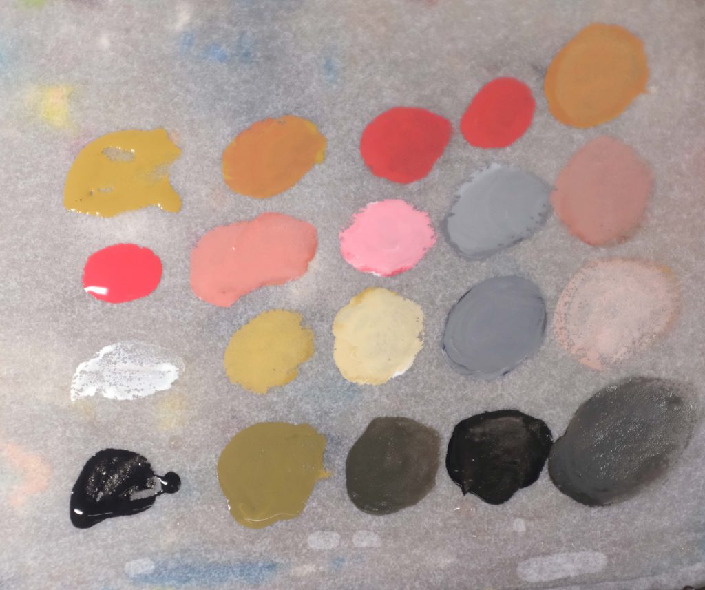 Got your wet palette? Good. Here's a little demo of how I used only a few paints to spin out a whole bunch of different colours.