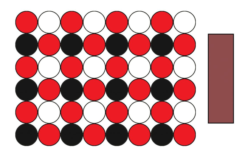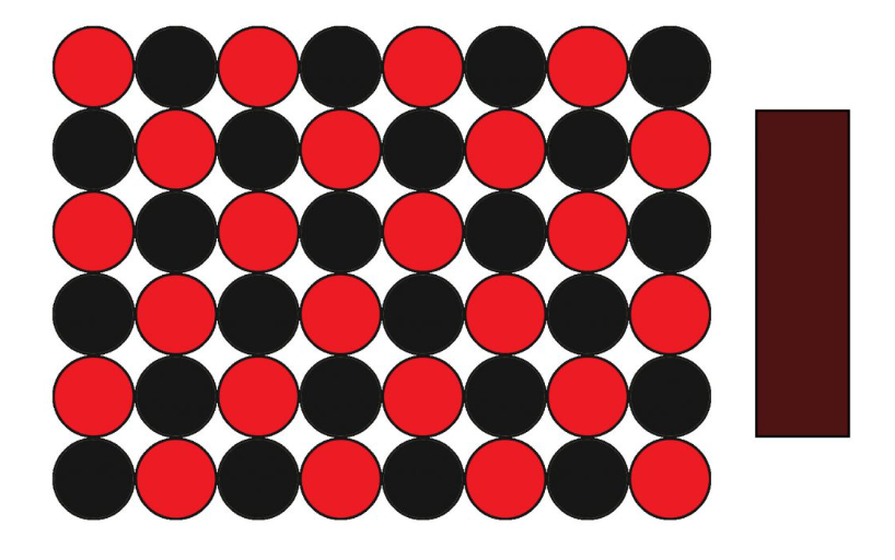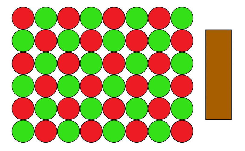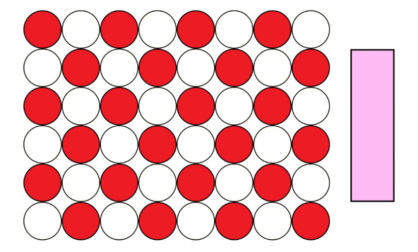 So we understand that mixing red and yellow makes orange, yellow and blue makes green, blue and red makes purple and so on (the secondary colours), but why does mixing red and white make pink, rather than a brighter red? Well, that’s because when you add white to a colour, you introduce white pigment particles to the mix, and while that does lighten the colour in terms of value, it also changes the chroma of the mix as the presence of these uncoloured pigments effectively reduces the ratio of coloured pigment in the overall colour. This is called a tint. So what we called pink is essentially a tint of red. This diagram displays what pink paint looks like on a particle level, you can see that the red is both lightened and desaturated by the addition of white.