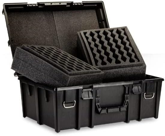 Foam cases, like the cases sold by Games Workshop, use flexible foam (usually polyurethane foam), to protect your models during transport. The advantage to using foam cases is that it’s very straightforward to use. Foam requires no additional work on your models, like magnet transportation does. The most work you would need to do for foam transport is cutting away slots for your model to fit in, if you need to do that at all. The Games Workshop cases don’t need anything to be cut at all, and you can even purchase foam trays exactly sized for models for the most convenience. Additionally, foam sheets aren’t very hard to find, and not terribly expensive.