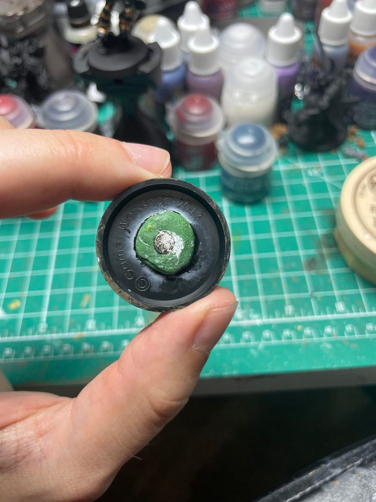 So why the Green Stuff? You’d think you would just be able to glue the magnet to the base and call it a day, right? Well, two issues with that. First, the magnet might not sit flush against the ground, and the magnetic pull is strongest with the magnetic surface and the magnet touching.