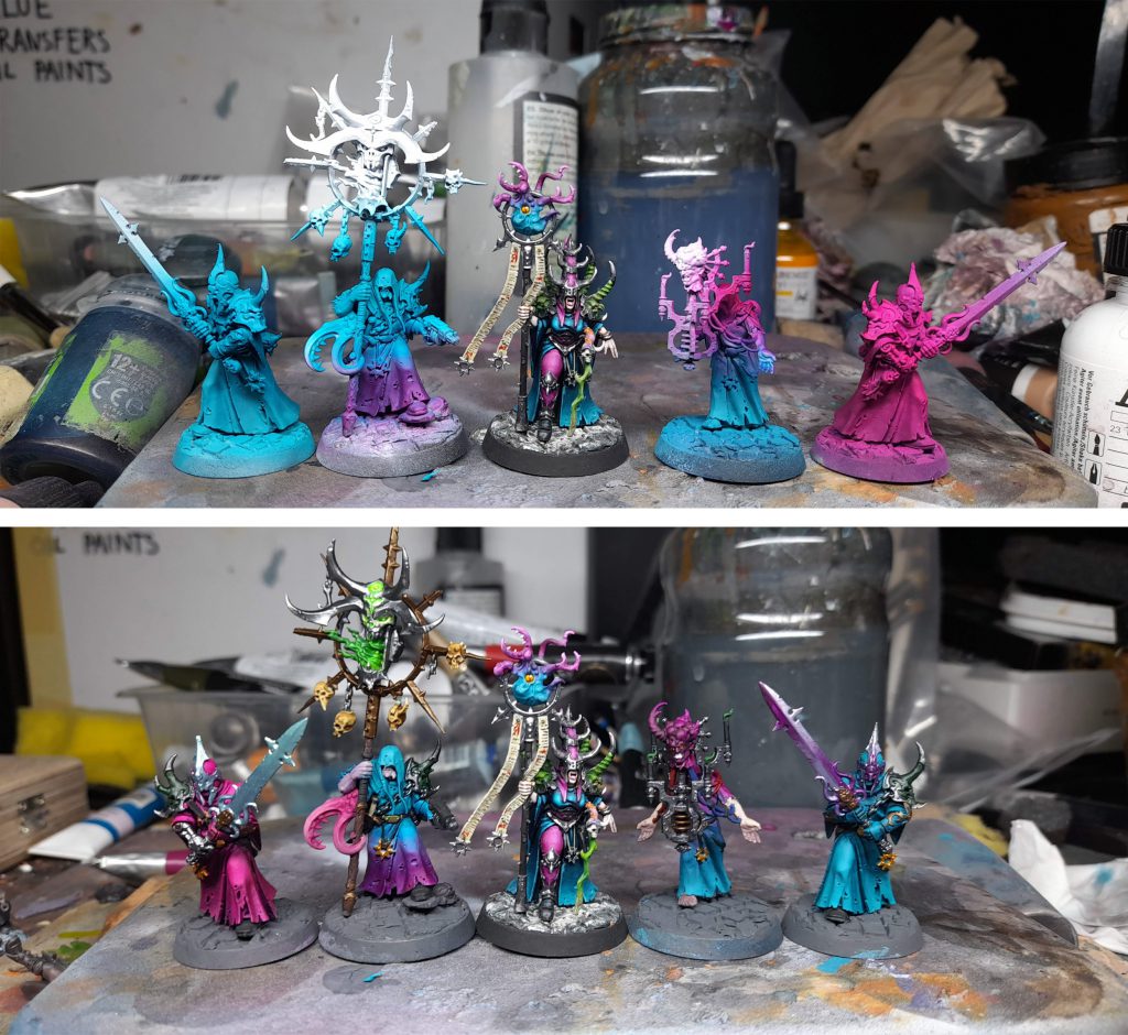 Airbrushes are somewhat contentious in the tabletop painting space, with some considering using an airbrush to be somewhat akin to cheating. Sometimes painters will go to lengths to explain that their work is "all brush work, no airbrush" in kind of the same way that rock bands in the 1970s would brag that they didn't use any synthesizers. So what? Oh wow, you've done some smooth blends there, and you didn't use an airbrush! Why not? Would have been much quicker for a similar result. What matters is the final result, no-one cares how you did it. Please, forgive my hobbyhorsing. Those people are wrong, obviously, an airbrush is just a tool for artists, using one won't automatically make your painting better, in fact, there's a rather punishing learning curve when it comes to getting to grips with the techniques (and maintenance) involved.