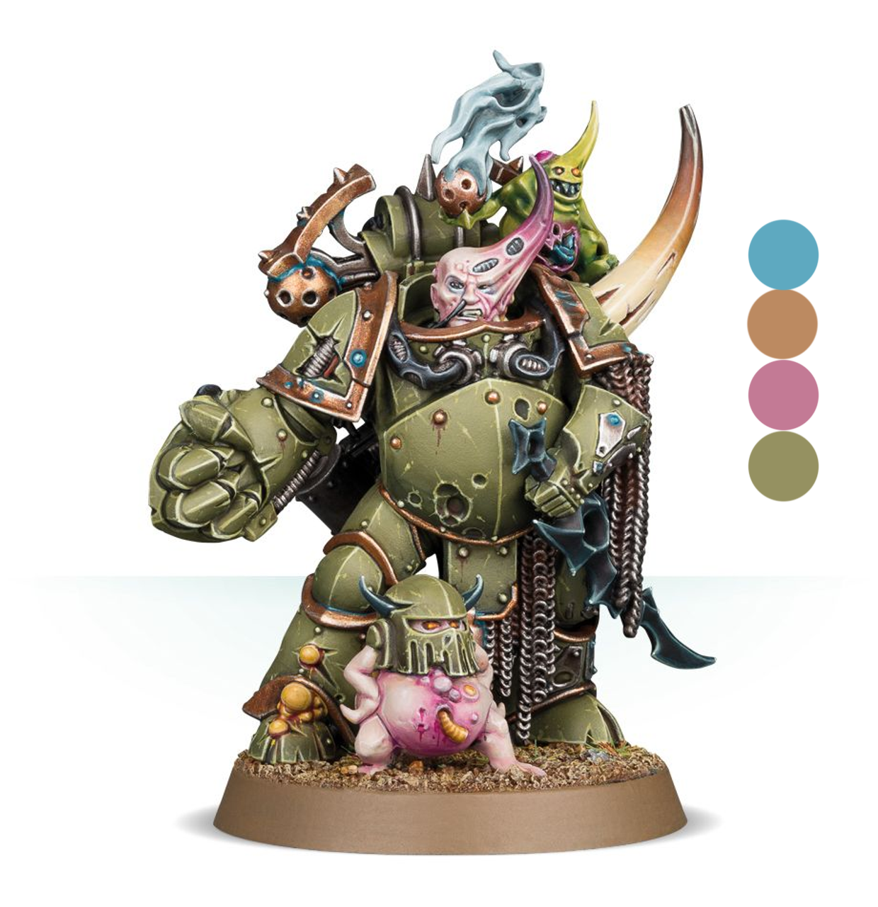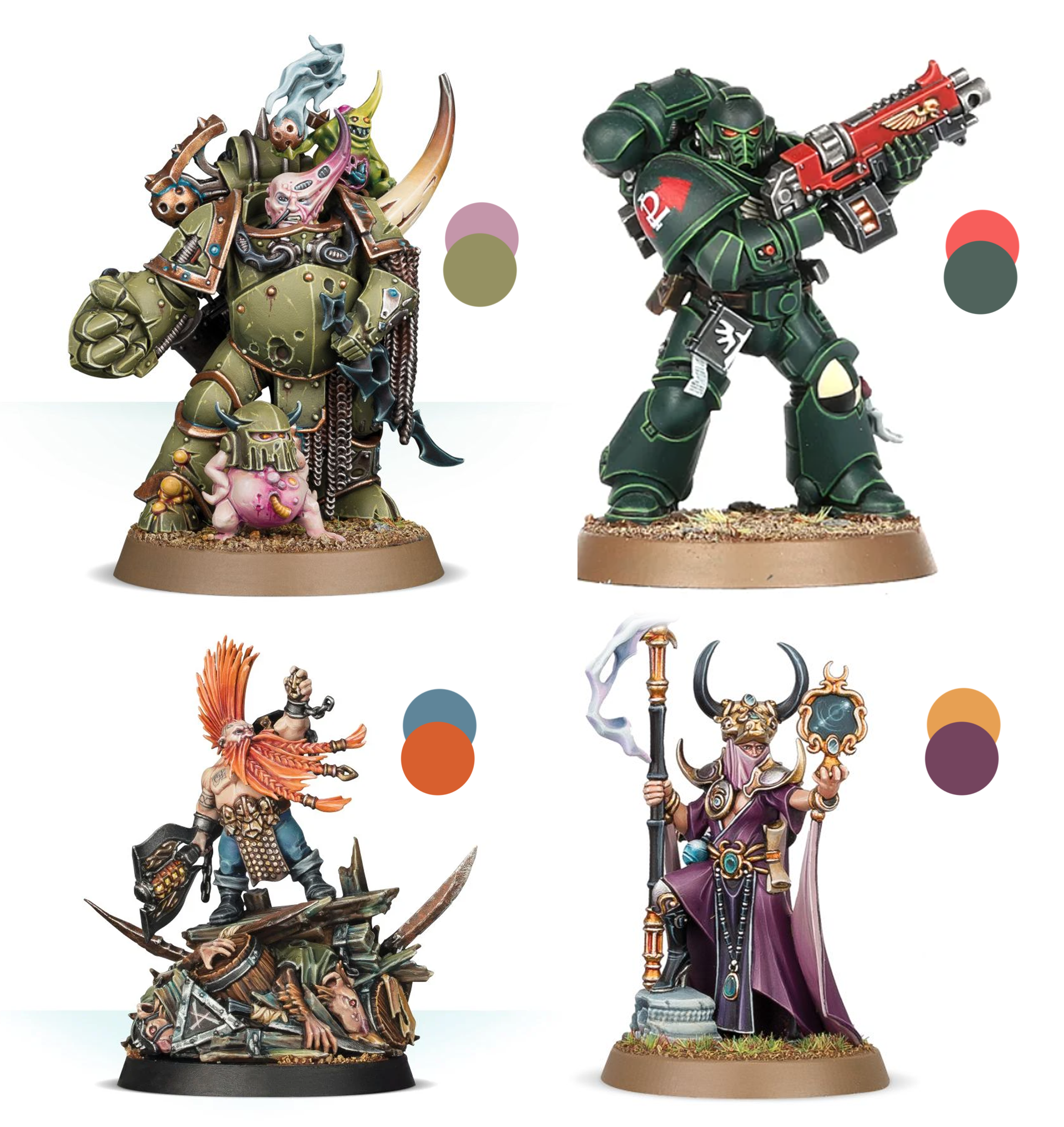 If we go back and look again at our Plague Marine from earlier, we'll find that there's a second complimentary pair hiding in plain sight. The gold and verdigris together create a subtle complimentary pair, making this scheme