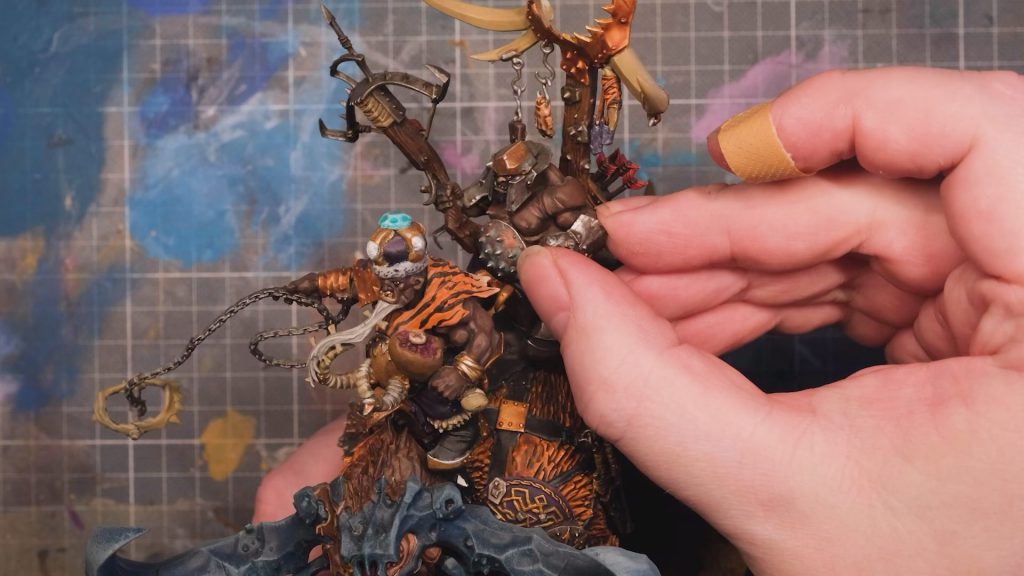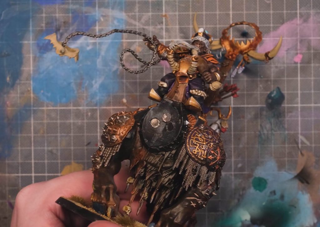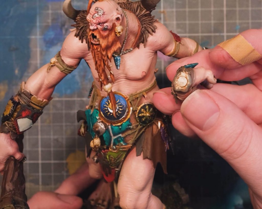 With some larger magnets on board, I can swap the beast’s head to make it into the other kind as easily as changing your trousers, and with some magnets cleverly hidden in the shoulder join (this one was a little tricky what with the angles and everything), I can easily swap the weapon in the hand of my very regal looking ogre king; that’s a ton of options from one kit.