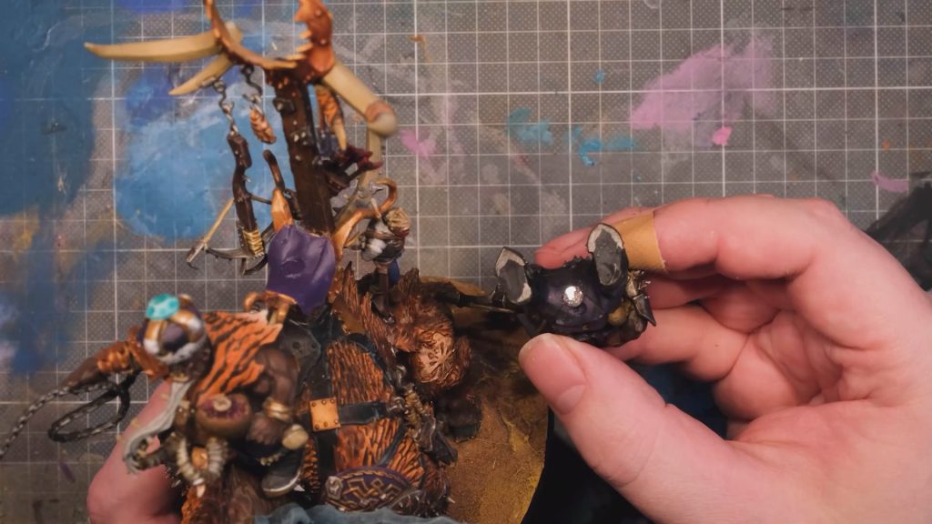 Transportability - Some of our favourite models are really big, and carting them around fully-built can be a bit of a pain. By clever use of magnets, you can disassemble your bigger models, transport them to wherever you’re going, then reassemble them easily. No more turning up to a tournament to find that your Wraithknight’s arm has snapped off in your case! The rider of my Ironjawz Maw-Krusha is magnetised such that he can pop off for transport - I left off the chains to make it a bit easier.