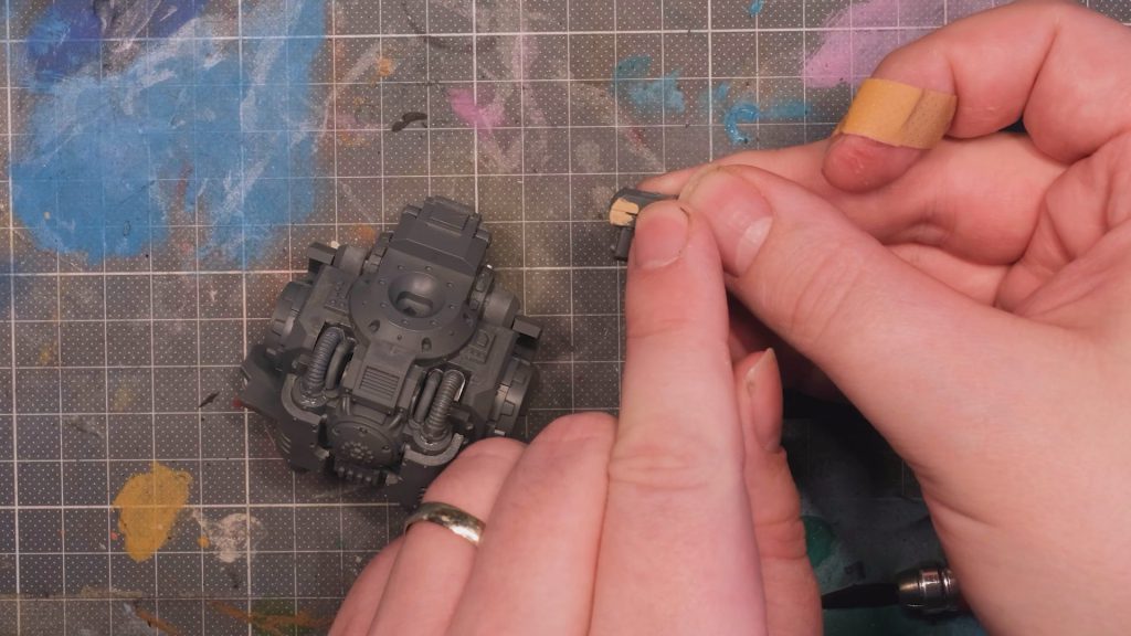 With some magnets inside the sponsons of this Leman Russ and hidden inside the body, I can swap them on and off as much as I like. Handy!