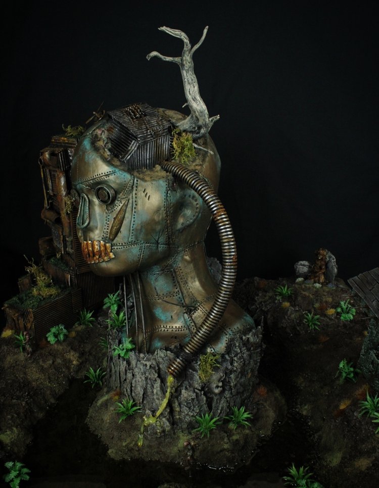 "Absolutely bonker idea of using an old doll! And the scene inside looks nicely weird and very skillfully painted. One of the most eye-catching entries this year! The scenes inside the doll are intricate but easy to read. The colours are harmonious. Unlike gaming pieces, dioramas are not usually designed to be touched. This one exceptionally has that tactile component, and it adds character to the piece. Truly encapsulates the premise of the competition, the theme this year, and the category it occupies. Astounding."