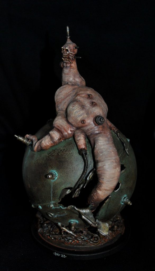 "The colours and textures of pale flesh and oxydised bronze complement each other excellently. The quality of craftsmanship is high. Such a weird amalgam of nonsensical flesh and mysterious machinery! Another piece that asks a lot of questions i'm happy having no answer for!"