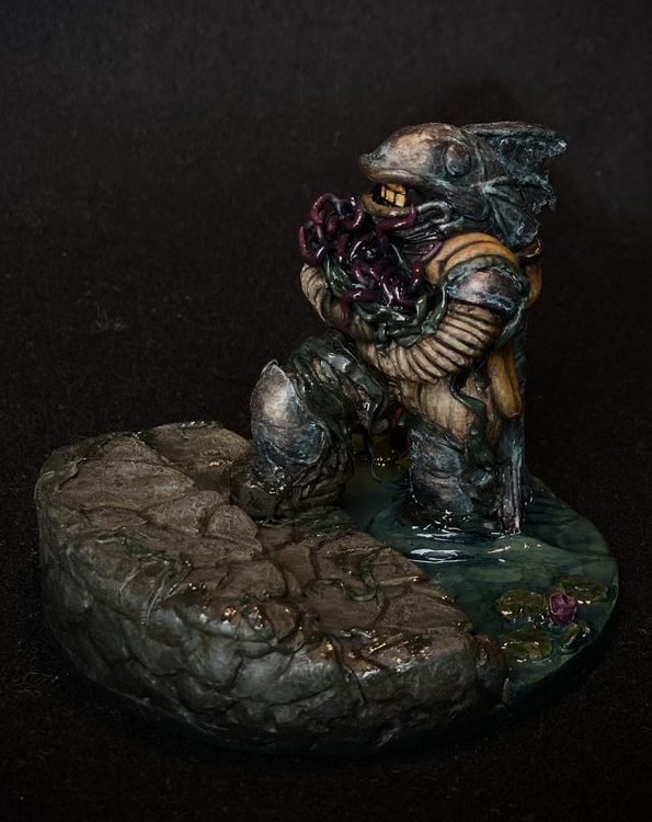 A theme was introduced for Smash bash: A Brackish Birth. Brackish often refers to water, where rivers meet seawater. It can also refer to something unpleasant or distasteful. Participants were encouraged to adhere to the theme, but also to interpret it as they see fit. Judging the contest were @totally_not_panicking, @gardensofhecate, and @nickygrillet. Ana Polanšćak (@gardensofhecate) sculpted a set of miniatures/kitbash bits again this year for the event, available in the Smash Bash shop. (Last year's Corpulent Horrors are still available too!)