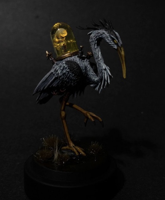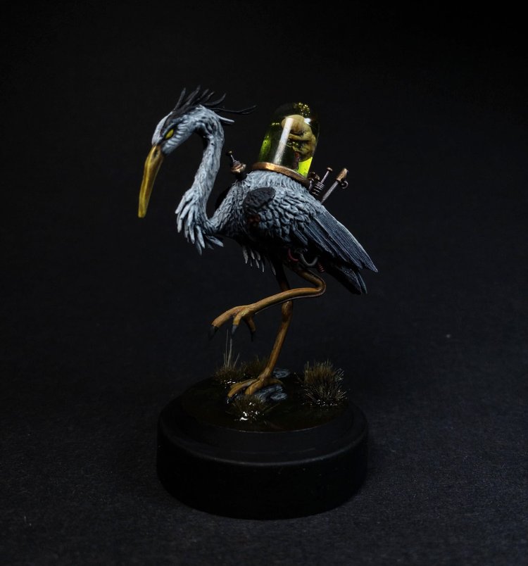 "I mean, it's weird and asks a lot of questions and the painting and techniques are great and it's tough not to just say it's fantastic! Nice dark interpretation of the old ‘stork bringing babies’ myth. Technical execution good overall. The baby jar looks fantastic. Big mood. Brackish birth indeed."