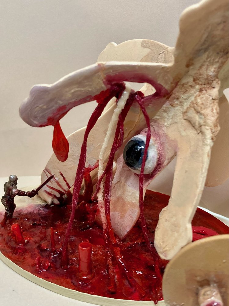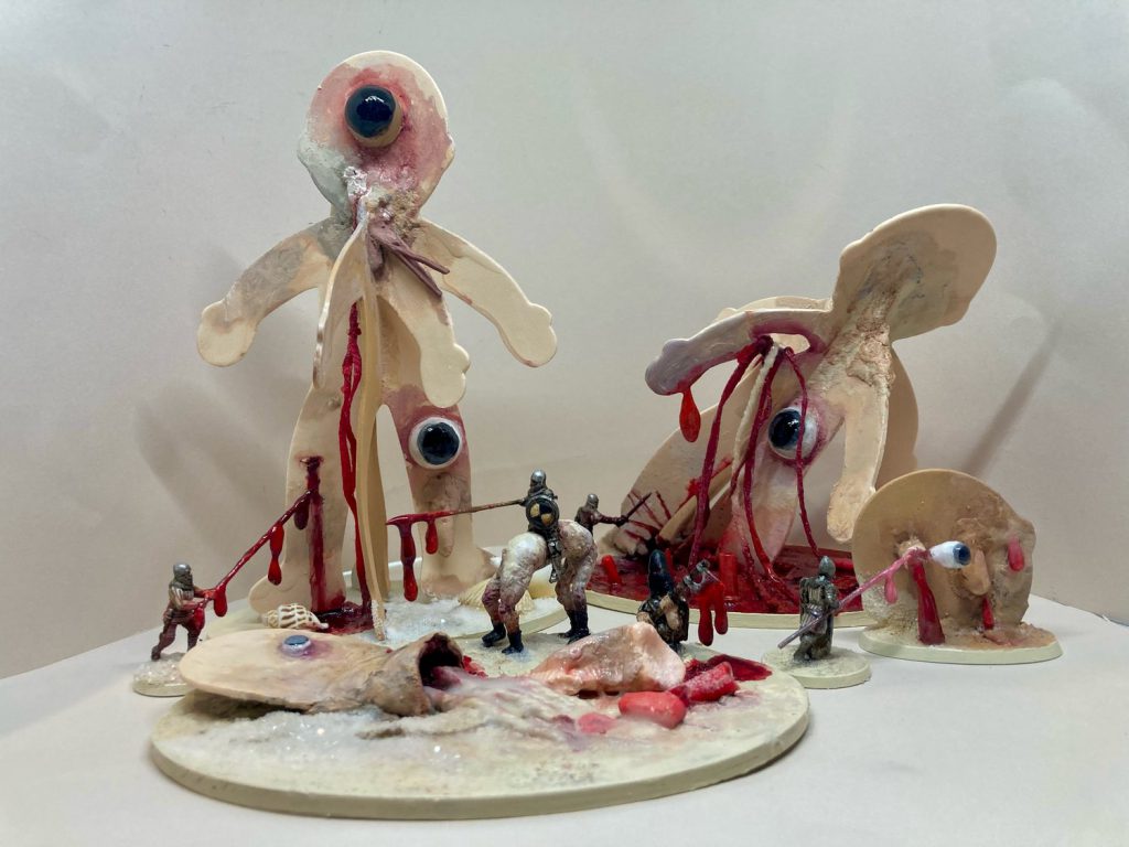 "Rad idea to turn an everyday object into a surreal artwork. The sculpting and painting are both excellent! A wonderful interpretation of the prompt, beautifully rendered, sculpted and painted. A sense of scale and carnage and whimsy that matches the call. Leaning into practical objects and reflecting them back is a wonderful turn. Belongs in a museum."
