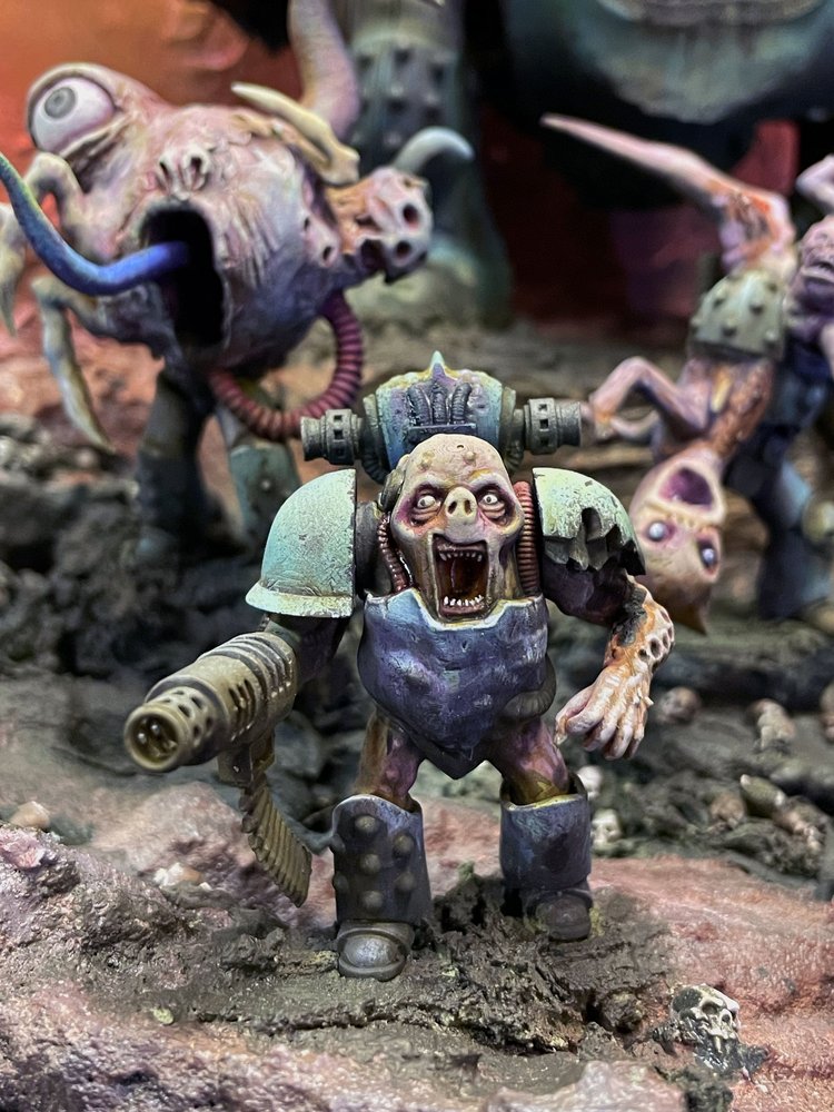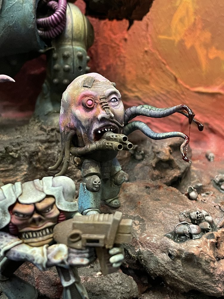 Divine sculptural details and great freak shit. Wonderful custom modeling on the figures. The entire scene belongs on the cover of an old Warhammer Codex (and I'm pretty sure that was the idea behind this lovely diorama)."