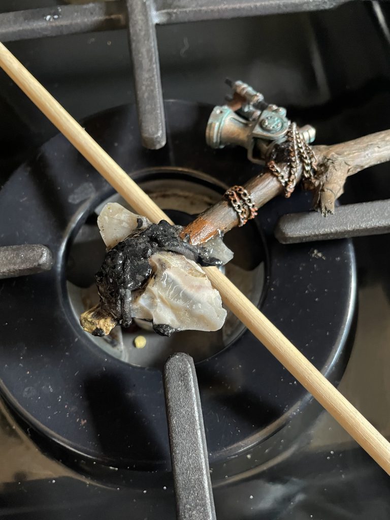 Lots of guides will tell you to bake materials, but I don’t think this is entirely necessary, or even desirable, in all cases. Baking is a good way to kill off anything left living in the wood/leaves you’re using, and this, substantially aided by cooking out moisture, will aid the longevity of the materials you’re using. Unless you’re working with bone or feathers (see next time, folks!), I don’t find it a particularly useful thing to do. If you are highly concerned about picking up some kind of disease from pine cones then yes by all means bake them.