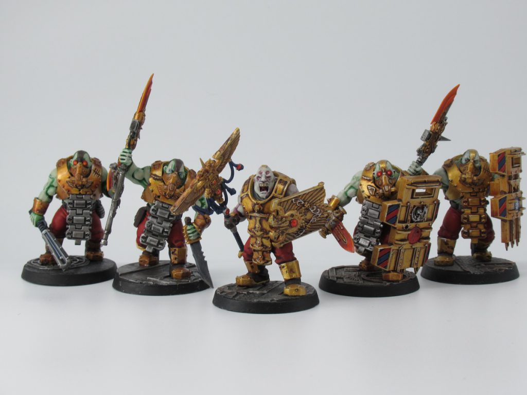 The second wing of Lady Hollzenstein's Custodians are the Bullgryns, various vat-boosted mutants who has proved themselves in service to one of her loyal Astra Militarum regiments. Archmagos Brackmann has experimented with incorporating Primaris genetic designs into his pet super-soldiers for academic rivalry with Belesarius Cawl is one of his greatest motivations.
