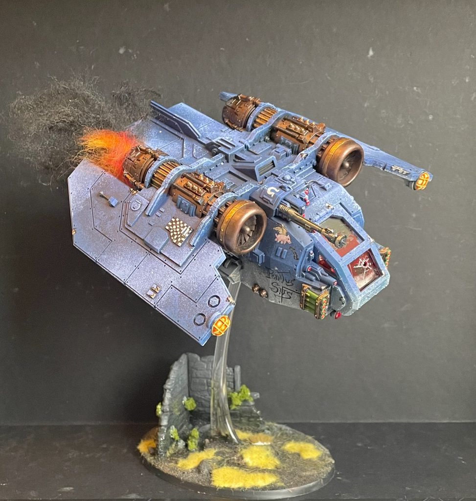 The kit comes with a few options but they're mainly related to landing gear and crew compartment. You can model an additional multi-laser gunner who has a fantastic tether to hold them in place, or stow the multi laser inside (that's what I did). Landing gear can be retracted or lowered - if you model them lowered this will also make a lovely terrain piece when you can't fit that 75 point flyer into your Solar Auxilia list. Other than that, you're building the kit stock with no other options, and that's fine.