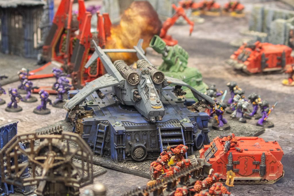 Off in Titanicus, the sides were competing to destroy terrain features and objectives across the planet, as the fabric of the Warp thinned and buckled under the pressure of the destruction caused by Traitor Legios and Astartes sorcerers. This caused carnage across the Heresy Battlefields, with a Reaver chassis exploded in the Ironyards, along with several bridges. In addition, the Guts was almost destroyed, with the forces of the Reavers and Victrix fighting to a standstill with the Hive falling in on itself and all multilevel ruins being reduced down to rubble.