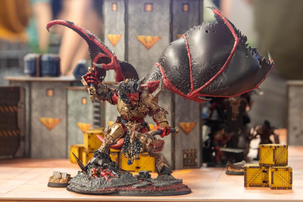A Tzeenetch Demon Lord from the Raiders face off against Loyalist Emperor's Children in the Dustbowl, photographed by Soggy